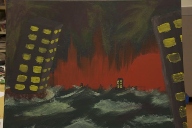In my art class I just finished a surrealistic painting. Is it good? I don't know! But one thing is for sure: I need a ton more experience with acrylic paint before I'll be able to satisfy my personal expectations. I also need to work on my steadiness with a brush-- It's something I'm not used to using, so I tend to get pretty shaky with it sometimes.I've also been working on my digital art skills for video games. Sure, I've done legions of sketches and stills, but it wasn't until recently that I've gotten interested in drawing/"painting" my game art rather than using low-res pixel-based art. I think it will propel the visual aspect of my games to new heights. And while, yes, I do have a certain love for pixel art and also for low-res art, it does not fit in with the kinds of games I'm looking to make. Also, I'd rather not do pixel art just for nostalgia's sake. And finally, aside from all that, it's been very refreshing and fun doing hand drawn game art! I'm enjoying it a ton.